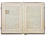 Pièce illustrée du portrait du Philippe V, roi d’Espagne (1683-1746), d’une grande figure héraldique aux armes de Gaspard PASTOR, d’une page de titre aux armes du Roi d’Espagne, de deux lettrines enluminées et d’un cadre enluminé portant la signature royale in fine.
