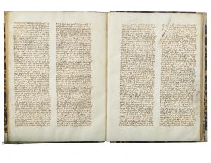 Manuscrit latin, écrit en 1306, sur peau de vélin, d'un ouvrage qui fut imprimé à Paris par Georges Mithelus en 1489.
