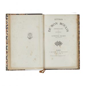 DAUDET (Alphonse). -- Lettres de mon moulin, impressions et souvenirs. -- Paris, J. Hetzel et Cie, Éditeurs, s. d. [1869]. -- In-12, demi-maroquin brun, dos à nerfs orné de caissons dorés, tête dorée, couverture conservée (M. Albinhac).