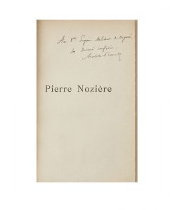FRANCE (Anatole). -- Pierre Nozière. -- Paris, Alphonse Lemerre, Éditeur, 1899. -- In-12, demi-maroquin bleu nuit à coins, dos à nerfs, tête dorée, non rogné, couverture jaune conservée (G. Huser).