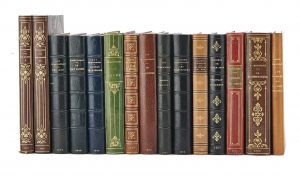 VILLIERS DE L’ISLE-ADAM (Auguste de). -- Tribulat Bonhomet. -- Paris, Tresse & Stock, Éditeurs, s. d. [1887]. -- In-12, chagrin noir, dos à nerfs orné, couverture bleue conservée (M. J. Latrobe).