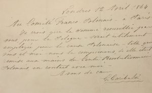 «Je crois que la somme recueillie par vous pour la Pologne serait utilement employée pour la cause polonaise telle que vous et moi nous la comprenons, si elle était remise aux mains de Centre révolutionnaire Polonais en contact avec moi. A vous de coeur, G. Garibaldi.»
