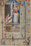 Provenance : .1. Manuscrit copié et enluminé en Normandie si l’on s’en réfère au style des miniatures attribuables au Maître de Sir John Fastolf. Toutefois, à noter que le Maître de Sir John Fastolf a certainement été formé à Paris, et a réalisé des Heures à l’usage plus universel de Paris comme c’est le cas ici...2. Famille du Liège d’Aunis, originaire de Picardie, avec leur ex-libris armorié contrecollé sur le contre plat supérieur : D’or au chêne-liège de sinople terrassé de même ; au chef de gueules chargé d’une fasce ondée du premier, surmontée de trois dés à jouer d’argent rangés en chef [au lieu de trois étoiles]. Les armoiries sont surmontées d’une couronne comtale et sous la mention « Ex libris du Liège » on trouve les initiales « P. L. D. D. ». ..