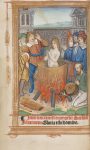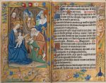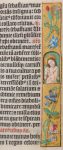 En plus de ces ornements, on trouve 16 autres belles bordures à la fin du volume, occupant la marge latérale des feuillets B2 r° v°, B3 v°, B4 r° v°, B5 r° v° , B6 r° v°, B7 r° v°, B8 r° v°, C1 r° v° et E6 v°. La première de ces bordures représente des fruits (fraises et raisins) et des fleurs sur un fond d’or. Les 10 suivantes et la dernière proposent un décor du même esprit mais contiennent en plus un total de 17 portraits de saints ou de petites scènes de la vie du Christ. Les 4 dernières bordures sont formées de 7 jolis portraits de saintes en médaillon, incorporés dans des guirlandes de perles, de feuilles ou de fruits...Toutes ces bordures ont été exécutées dans le style des manuscrits « ganto-brugeois », en vogue dans la capitale à la fin du XVe siècle et au début du XVIe siècle...