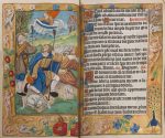 Exemplaire très bien conservé, absolument complet. Les enluminures sont bien toutes entières, non coupées par le relieur. On note simplement une restauration à l’angle inférieur du troisième feuillet, sans atteinte au texte, et quelques traces de frottements sans gravité à certaines enluminures.