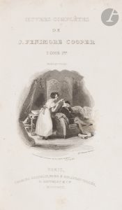 Champfleury, Les vignettes romantiques, page 261...Première édition française illustrée des œuvres complètes de Fenimore Cooper, imprimée sur papier vélin, très recherchée et particulièrement rare complète de tous ses volumes..L’illustration se compose de 27 titres gravés en taille douce, chacun orné d’une vignette, et de 27 planches gravées à l’eau-forte et tirées sur chine collé, le tout dessiné et gravé par Alfred et Tony Johannot. On y trouve également 8 cartes dépliantes..Selon Gustave Planche, cité par Champfleury dans son ouvrage intitulé Les Vignettes romantiques : « Les eaux-fortes dessinées et gravées par MM. A. et T. Johannot, pour les romans de Fenimore Cooper, égalent ce qu’on connaît de mieux en ce genre » (page 261)..Cette édition est d’autant plus importante que les 27 vignettes de titre et 13 des 27 eaux-fortes ne seront pas reprises dans le tirage suivant de 1831-1832...Bel exemplaire en reliure de l’époque, bien conservé malgré les dos légèrement éclaircis. La carte du tome 16 possède une déchirure sans manque anciennement réparée au scotch qui a laissé des traces brunes.