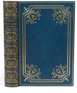 MOREAU (Hégésippe)..Petits contes à ma sœur..Paris : Édouard Pelletan, 1896. — In-8, 239 x 161 : (4 ff. premier blanc), 195 pp., (4 ff. dernier blanc), couverture imprimée. Maroquin bleu, filets droits et courbes en encadrement et fleurs...