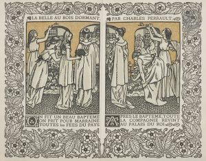 PERRAULT (Charles)..La Belle au bois dormant. Le Petit Chaperon rouge. Deux contes de ma mère loye..Londres : Eragny press, 1899. — In-12, 194 x 125 : 38 pp., (1 f.). Cartonnage de l’éditeur, étui-boîte demi-toile bleue à la bradel de...