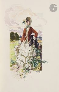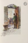 janséniste, dos à nerfs, doublures de maroquin vert bordé d’un filet doré et orné d’un encadrement composé de listels de maroquin rouge formant des compartiments ornés de filets et de motifs dorés, gardes de soie moirée havane, doubles gardes de papier marbré, tranches dorées sur témoins, couverture et dos conservés, étui (Semet et Plumelle)...Édition tirée à 600 exemplaires..Celui-ci est un exemplaire unique, sur papier Whatman, dont les compositions initiales d’Alfred de Richemont ont été remplacées par 27 aquarelles originales en couleurs du peintre et illustrateur Fred Money (1882-1956), dont une figurant sur le titre, 6 dans le texte et 20 hors texte. Il porte à la justification, l’indication écrite par l’artiste, signée par ses soins et par François Ferroud : « Exemplaire orné d’aquarelles originales »...Fred Money avait été l’élève de Georges Antoine Rochegrosse à l’école des Beaux-arts de Paris. Peintre surtout de paysages, ami d’Auguste Renoir, il fut influencé par les impressionnistes. Il illustra de nombreuses œuvres de Daudet, Dumas, Loti, Louÿs ou encore Flaubert et notamment Madame Bovary en 1947. « La délicatesse de sa touche et la fraîcheur de sa palette, animée par un travail approfondi sur la lumière, font de son œuvre un bel exemple de l’art impressionniste » (Benezit)...Les aquarelles figurant dans cet exemplaire furent réalisées en 1928-1929, c’est ce que l’artiste indique dans une des deux L.A.S. jointes à l’exemplaire, adressées selon toute vraisemblance à François Ferroud. La première, d’une page et demie in-12, est datée du 25 septembre 1928 : « En même temps que ce petit mot je vous adresse sous pli recommandé une série d’aquarelles que je viens d’exécuter d’après nature dans le décor où Flaubert a fait vivre et se mouvoir ses personnages de Madame Bovary. J’ai trouvé là les hêtres magnifiques dont il parle et aussi cette végétation luxuriante et spéciale à la Normandie […] J’ai fait cette série d’aquarelles très consciencieusement aussi j’espère que vous serez satisfait de l’ensemble de l’ouvrage »...Dans la seconde lettre, d’une page in-12, Money semble faire référence aux aquarelles réalisées pour l’édition illustrée publiée par Ferroud en 1947 ; elle est datée du jeudi 22 mai (1947 ?) : « Je viens de terminer un Bovary. Vous conviendrait-il de jeter un coup d’œil à ces aquarelles… »..En plus de ces 2 lettres, l’exemplaire est enrichi des pièces suivantes :.- Article de journal de Françoise Escoffier-Robida, intitulé Le Secret de « Madame Bovary »,.- portrait d’Anatole France par Henri Bellery-Desfontaines, en deux états, sur japon et sur vélin, tiré du Génie latin publié par Pelletan en 1909,.- portrait de Flaubert gravé par Champollion d’après Caroline Commanville, sur japon, tiré de l’ouvrage de cette dernière intitulé Souvenirs sur Gustave Flaubert publié chez Ferroud en 1895,.- la suite des 26 gravures sur bois d’après Money, sur vélin Lafuma, pour l’édition de Madame Bovary donnée par Ferroud en 1947. On voit de cette manière que l’artiste s’est grandement influencé des aquarelles faites dans cet exemplaire pour réaliser l’illustration publiée presque 20 ans plus tard, la plupart des gravures étant placées en regard des aquarelles évoquant les mêmes sujets,.- suite sur japon avec remarque des 27 compositions d’Alfred de Richemont gravées par Chessa,.- dessin original à l’encre de Fred Money pour l’une des illustrations de l’édition de 1947,.- deux épreuves sur chine d’une gravure pour Madame Bovary signée Cuisinier (mouillures),.- reproduction du plan dressé par Flaubert de la topographie de Yonville-l’Abbaye...Exemplaire parfaitement conservé, en reliure doublée de Semet et Plumelle.