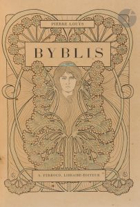 LOUŸS (Pierre)..Byblis. Préface par Gilbert de Voisins..Paris : Librairie des Amateurs, A. Ferroud, 1901. — In-8, 225 x 154 : XV, 46 pp., (1 f.), couverture illustrée. Demi-maroquin brun foncé à coins, dos lisse orné de motifs d’olives et...