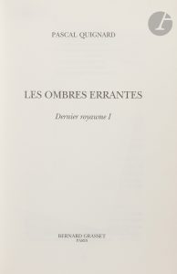 QUIGNARD (Pascal)..Dernier royaume : Les Ombres errantes. - Sur le jadis. - Abîmes. - Les Paradisiaques. - Sordidissimes..Paris : Grasset, [2002-2005]. — 5 volumes in-8, 189 pp., (1 f.) ; 310 pp., (5 ff. dernier blanc) ; 262 pp., (5 ff. dernier...