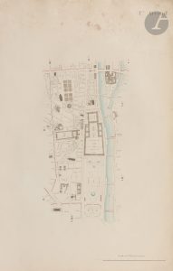 premier plat...Précieux et vraisemblablement unique atlas manuscrit comprenant un titre et 20 plans des arrondissements de Paris, dont 9 sur double page montés sur toile...Ce plan fut exécuté par l’ingénieur géomètre P. Dubois en 1863. Ce dernier y restitue les 20 arrondissements tels qu’ils furent délimités par la loi du 16 juin 1859 dans le cadre de l’annexion des faubourgs situés entre les enceintes des Fermiers généraux et de Thiers. Les frontières des arrondissements sont peintes en rouge et la Seine en bleu...On connaît un plan de la ville de Neuilly-sur-Seine gravé par Brindot d’après Dubois, mais ce plan de Paris semble n’avoir jamais été publié...Mouillures et taches sur le titre, mouillures dans la marge supérieure des plans.