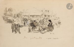 dorée, non rogné, couverture et dos conservés (Devauchelle)...Édition originale dédiée à Georges Montorgueil, tirée à 250 exemplaires numérotés sur vélin du Marais..L’illustration se compose de 41 eaux-fortes originales d’Auguste Lepère (1849-1918), dont un frontispice, 20 en-têtes et 20 culs-de-lampe. À cela s’ajoutent 20 lettrines gravées sur bois en bistre...Exemplaire enrichi de 2 croquis originaux d’Auguste Lepère et d’une suite comprenant un tirage du frontispice, de 4 en-têtes et de 4 culs-de-lampe...Quelques rares rousseurs sans gravité à la suite.