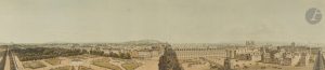 Flore du Louvre, dessinée par Schmidt et gravée à l’aquatinte et lavis par Frédéric Salathé..Ce panorama parut en noir au prix de 16 francs et colorié au prix de 36 francs. Il s’agit ici d’une épreuve coloriée. Il se compose de 4 feuillets numérotés que l’on pouvait trouver à l’unité, joints d’un seul tenant ou comme ici collés deux par deux..Exemplaire très bien conservé. Bords brunis et quelques rousseurs sans gravité.