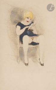 2 premiers blancs), 151 pp., (4 ff. 3 derniers blancs), 10 planches, couverture imprimée. Broché, couverture rempliée, chemise et étui argentés de l’éditeur...Dutel, 2545. - Pia, 1465...Belle édition tirée à 165 exemplaires, illustrée de 11 compositions hors texte, dont une en frontispice, gravées à l’eau-forte par Frans de GEETERE (1895-1973) qui a aussi publié l’ouvrage. On y trouve également une épreuve aquarellée du frontispice...Précieux exemplaire, un des 9 premiers sur japon impérial, enrichi du dessin original au crayon de l’illustration figurant entre les pages 32-33, signé par l’artiste, et du cuivre correspondant...Pages 49 à 56 débrochés.