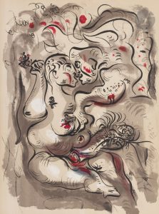 MASSON (André)..Dessins érotiques..S.l. : Tchou, 1971. — In-plano, 647 x 500 : (8 ff.), 20 planches. En feuilles, sous chemise de tissus rouge de l’éditeur. ..Édition réunissant 20 lithographies érotiques originales d’André MASSON, dont...