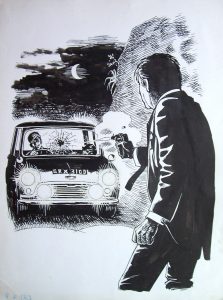 BERGESE Francis. Signe de Piste Encre de Chine noire pour une illustration qui aurait du paraître dans un Signe de Piste à la fin des années 60. Format : 25 x 32 cm