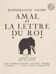 FOUJITA (Léonard) - TAGORE (Rabîndranâth) - GIDE (André)..Amal et la lettre du roi. Traduit par André Gide..Paris : Les publications Lucien Vogel, 1922. — In-4, 271 x 216 : 27 pp., couverture rouge avec étiquette imprimée. Broché,...