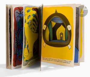 poétique d’Adrien...Cet ouvrage est l’œuvre du poète, peintre et illustrateur Maurice HENRY (1907-1984), proche des surréalistes. Il est considéré comme l’un des plus beaux livres objets du XXe siècle. Il se compose de 64 planches en couleurs sur 32 feuillets dont 16 ajourés..« À l’image du voyage onirique et enchanteur du personnage, qui a quitté la terre ferme pour circuler à travers des paysages fantastiques, tour à tour aquatique, végétal et minéral, ces ajours induisent dans la lecture une logique nouvelle et en bouleversent la temporalité : chaque feuillet tourné est un pas vers une surprise..Empreintes de surréalisme, ces Métamorphoses, tout à fait à part dans l’œuvre de Maurice Henry, content aussi en images des réminiscences clés de son existence en réunissant les figures de compagnons de route tels René Daumal, poète du Grand Jeu, et André Breton » (présentation des éditions des Sandres pour la réédition du livre en 2018)...Exemplaire de second tirage, le premier ayant été en grande partie détruit dans un incendie...Exemplaire bien conservé malgré une déchirure d’une dizaine de centimètres à la toile du dos.
