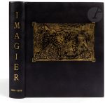 IMAGIER DE LA GRAVURE SUR BOIS ORIGINALE..Paris : [S.G.B.O.], 1920-1929. — 11 albums en un volume in-4, 326 x 272. Chagrin noir, empreinte dorée d’une plaque gravée de Paul Jouve sur le premier plat, dos lisse, doublures et gardes de daim gris,...