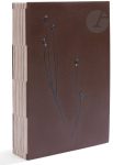 brun ornés de compositions florales faites de tiges et de graines collées et peintes en bleu, accompagnées de trois petites coccinelles collées sur le premier plat, doublures et gardes de daim brun foncé, non rogné, couverture et dos conservés, emboîtage à dos et bords de chagrin brun, doublé de daim gris, liens de cuir avec morceau de bois (Marie-José Guian)...Belle édition de ces 3 contes d’Andersen (Le Rossignol, Le Lin et Le Goulot de bouteille) dans la traduction de Régis Boyer, illustrée de 10 compositions gravées en taille-douce à pleine page de Catherine KEUN (née en 1958)...Tirage à 130 exemplaires sur Hahnemühle pur chiffon, signés par l’artiste, celui-ci étant l’un des 110 nominatifs, spécialement imprimé pour Marie-José Guian qui a réalisé la très belle reliure qui le recouvre.