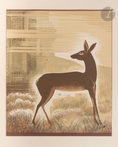 bleu foncé, premier plat orné de 3 pièces de peau de lézard bleu foncé en forme de triangle aux bords courbes et dorés, dos lisse, doublures et gardes de daim rose, tête dorée, non rogné, couverture et dos conservés, emboîtage à dos, bandes et tranches de box bleu foncé, doublé de daim rose (M. J. Guian-Milliaud)...Première édition illustrée, ornée de 8 aquarelles de Marie LAURENCIN (1883-1956), dont 4 hors texte, gravées sur bois en couleurs par Jules Germain et L. Petitbarat...Tirage unique à 412 exemplaires sur papier Lafuma-Navarre. Un des 12 hors commerce, spécialement imprimé pour Sylvia ? (nom difficile à déchiffrer)...Exemplaire enrichi de deux épreuves sur japon mince de deux des bois in-texte du livre...Belle reliure de Marie-Josée Guian, réalisée pour son compte personnel..Couverture restaurée.
