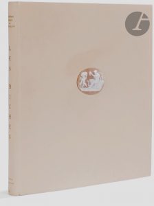 planches, couverture illustrée. Box beige pour le premier volume et demi-box beige à coins pour le second, camée coquille représentant une scène antique avec une jeune femme faisant face à un angelot incrusté dans le premier plat du premier volume, dos lisses, têtes dorées, non rognés, couvertures et dos conservés, sous emboîtage à dos plat et coins de box beige (Marie-Josée Guian)...Très bel ouvrage consacré au ballet Les Biches de Bronislava Nijinska créé le 6 janvier 1924 par les ballets russes de Serge de Diaghilev sur la musique de Francis Poulenc et avec les décors et costumes dessinés par Marie Laurencin...Cette publication, tirée à 335 exemplaires, est divisée en 2 parties, chacune comprenant une belle couverture illustrée par Marie LAURENCIN (1883-1956). La première contient un portrait de La Nijinska d’après un dessin de Jean COCTEAU, un article de ce dernier, un portrait de Francis Poulenc d’après Marie Laurencin, un article de Darius Milhaud, une reproduction de la partition de Poulenc et 14 reproductions en couleurs de dessins et peintures de Marie LAURENCIN..La seconde partie est consacrée à la réalisation scénique et comporte un portrait photographique de Marie Laurencin d’après une photographie de Man Ray et 23 photographies de Georges Detaille représentant les différents artistes du ballet...Un des 60 premiers exemplaires sur vélin de Hollande van Gelder, celui-ci enrichi d’un envoi de Marie Laurencin à son amie Corah :..A ma chère Corah // bien affectueusement // son amie // Marie Laurencin..Cet envoi figure sur le feuillet précédant la suite des 14 dessins et tableaux de Marie Laurencin...Très bel exemplaire, entièrement monté sur onglets, dans une reliure de Marie-Josée Guian qui a incrusté un très jolie camée coquille de la moitié du XIXe siècle, dans le premier plat du premier volume.