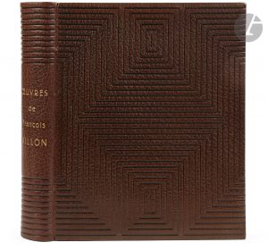 blancs), couverture imprimée. Maroquin brun, plats et dos couverts d’un décor géométrique de filets et de rectangles à froid, dos lisse, encadrement de maroquin brun à l’intérieur, orné d’un filet à froid, doublures et gardes de velours marron, doubles gardes, tête dorée, non rogné, couverture conservée, étui (G. Cretté succ. de Marius Michel)...Superbe édition tirée à seulement 125 exemplaires sur papier vélin d’Arches, illustrée de 76 gravures originales en couleurs de Charles MARTIN (1884-1937), dont une en frontispice et 75 dans le texte...Un des 20 exemplaires comportant une suite des gravures en couleurs...Précieux exemplaire en pleine reliure originale de Georges Cretté. Il a été enrichi de deux dessins originaux de Charles Martin, à savoir une aquarelle inédite et le croquis original au crayon de l’illustration de la page 43, ainsi que de 8 pages d’épreuves (pp. 37 à 40 et 53 à 56) comprenant 3 croquis originaux de l’artiste dont 2 rehaussés en couleurs..Exemplaire parfaitement conservé..Provenance : Docteur G. Marchal, avec ex-libris.
