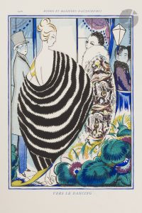 [MODE] - BONFILS (Robert) - HOUVILLE (Gérard d’)..Modes et manières d’aujourd’hui. Neuvième année..Paris : collection Pierre Corrard, 1920. — In-8, 283 x 193 : (19 ff.), 12 planches. En feuilles, sous chemise cartonnée illustrée à...