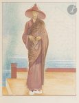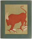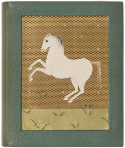 des volumes I et II est décoré d’une composition en relief dans un large compartiment rectangulaire en creux à fond doré orné de petites bandes de maroquin vert pour l’un et de maroquin vert et brun pour l’autre, ces compositions représentent sur le premier volume un grand taureau de maroquin fauve aux cornes de box ivoire, et sur le second volume un cheval de maroquin blanc ; le volume de dessins est orné, en creux sur le premier plat, d’une composition peinte et mosaïquée représentant un paysage nocturne ; dos lisses, encadrement de maroquin vert et d’un listel respectivement de maroquin fauve et de maroquin blanc à l’intérieur des deux premiers volumes, et de maroquin blanc et d’un listel de maroquin bleu à l’intérieur du volume de dessins, doublures et gardes de soie beige et ivoire, tranches dorées sur témoins pour les volumes de textes et au palladium pour l’autre volume, couvertures et dos conservés, chemise à dos et bandes à recouvrement de maroquin vert, étui (Creuzevault)...LE PLUS PRÉCIEUX DES EXEMPLAIRES DE CE LIVRE...Il s’agit effectivement de la maquette originale complète, justifiée ainsi par l’éditeur à la justification, comprenant les 57 gouaches originales de François-Louis SCHMIED (1873-1941), montées ou reliées à leur emplacement dans un exemplaire du livre imprimé sur japon. On y trouve ainsi un frontispice, 14 dessins hors texte, 15 têtes de chapitres, 15 lettrines, 11 culs-de-lampe et une vignette au colophon. Seuls les bandeaux et les têtes de chapitres sont signés. On trouve à la fin du premier volume un feuillet avec les dessins de 3 culs-de-lampe non retenus...Il est joint dans un troisième volume les 15 gouaches originales de la Suite pour Kim, toutes signées par Schmied et complètes de la chemise imprimée. Cette suite, montée sur onglets, est justifiée et signée à l’encre par Schmied sur le premier feuillet. Il a été ajouté une gouache originale inédite de l’artiste, illustrant une phrase du livre : « Qui va aux montagne va vers sa mère », dédicacée par Schmied à Gaston Gradis...ÉTONNANTES ET PRÉCIEUSES RELIURES DE CREUZEVAULT, CHACUNE ORNÉE D’UN DÉCOR DIFFÉRENT EN CREUX ET EN RELIEF...Il s’agit de la reprise de 3 illustrations du livre, à savoir le taureau figurant en frontispice dans le premier volume, l’étalon blanc d’après la planche 6 dans le même volume, et de « La rivière sous les étoiles » d’après la gouache XV de la Suite pour Kim...Ensemble unique et des plus précieux, réunissant 75 gouaches originales de l’un des artistes majeurs de la période Art déco et proposant 3 reliures originales de Creuzevault, parmi les plus belles qu’il ait réalisées...Exemplaire parfaitement conservé. Les chemises et les étuis semblent avoir été refaits.