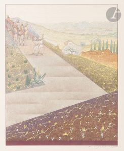 par François-Louis SCHMIED (1873-1941), tirée à 160 exemplaires et comprenant 15 compositions en couleurs sur japon, signées par l’artiste. Chaque planche est placée dans une chemise imprimée..Coiffe inférieure de la chemise abîmée, déchirures aux rabats. Les planches sont parfaitement conservées.