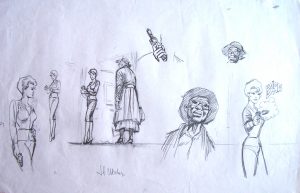CHARLES Jean-François. Fox. Mine de plomb pour des études d’Adriana et d’une femme noire. 44 x 27,5 cm Signé