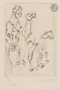 illustrée de 7 eaux-fortes originales à pleine page de Jacques VILLON...Tirage à 111 exemplaires signés par l’auteur et l’illustrateur...Celui-ci est l’un des 21 premiers sur Montval, enrichis d’une suite des 7 gravures en premier état, tirées sur japon ancien, justifiées et signées par Villon (n° 8)...Exemplaire très bien conservé.