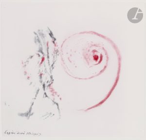 WOU-KI (Zao) - MICHAUX (Henri)..Annonciation. Moments..Paris : Les Bibliophiles de l’automobile club de France, [1996]. — In-folio, 344 x 304 : (36 ff.), couverture imprimée. En feuilles, couverture rempliée, chemise et étui en toile rouge de...