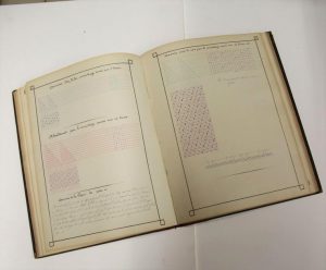 (Tissage). " Cours de tissage ". Sans date (début XXème). Grand in-4 relié demi basane ancienne, dos titré. Cours manuscrit sur papier semi rigide millimétré. 217 pages. Nombreuses figures. 49 échantillons de soie présentés collés par points de colle. Belle écriture très lisible. Bel exemplaire.