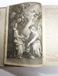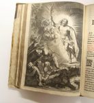 (Carmel / Peter Clouwet). " Brevarium Fratum ordinis B. Mariae Virginis de Monte Carmelo ". Antwerp, Verdussen, 1666. Petit in-8 relié dos cuir à coins. Plats cartonnés (cuir absent). Page de titre gravée (petits manque de papier en marge), 3 belles planches à pleines pages de Peter Clouwet. Manque plusieurs cahiers en début de volume (88 pages), manque angulaire de carton, restaurations grossières au papier scotch transparent. Belles planches gravées.