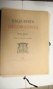 Binet (René) " Esquisses décoratives " Librairie Centrale des Beaux Arts, sans date (1905), in folio en feuilles sous portefeuille à lacets, dos toilé. Préface de Gustave Geffroy avev figures en noir. Complet des 60 planches en noir, à deux tons ou polychromes. Portefeuille rapporté. Bel exemplaire.