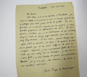 André PIEYRE DE MANDIARGUES (1909-1991). Lettre autographe signée, Stockholm 14 juin 1962 ; 1 page in-4 sur papier pelure.