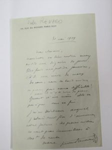 Jules RENARD. Lettre autographe signée, Paris 31 mai 1909, (à Lucien Descaves), 1 page in-12 à son adresse.