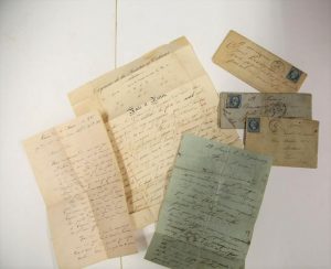 Ensemble de 3 lettres sous plis. Avec timbres et cachets de la poste.