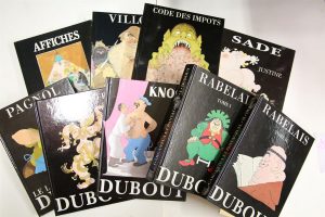 " Pagnol, le livre des livres ; Kamasoutra ; Knock ; Rabelais 2 volumes (complet du menu), Sade " Justine " ; le code des impôts ; les affiches ; oeuvres de Villon ".