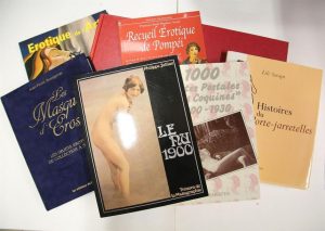 Fabien Sabates " 1000 cartes postales très coquines. 1900-1930 ". Ed. Nationale 7, 1986, in-4 relié cartonnage. Illustrations.