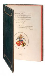 véritable de la noblesse, qui a été reconnue et approuvée dans la recherche qui en a été faite en 1667 et 1668, pour les pays de Lyonnais, Forez et Beaujolais, imprimé à Lyon en 1668 par C. Brunand. 1847. Manuscrit de [110] ff. Petit in-4, maroquin vert, décor à la Du Seuil avec fleurs de lis aux angles, dos orné de fleurs de lis, dentelle intérieure, tranches rouges, emboîtage (Thomas). Superbe manuscrit héraldique orné de 207 armoiries finement dessinées en vif coloris d'époque, représentées à raison de deux par page et soigneusement légendées à la plume.