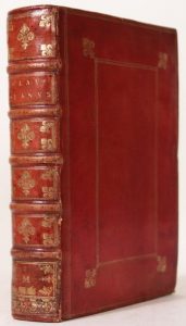 Très bel exemplaire en maroquin doublé provenant de la bibliothèque Lamoignon (1791, I, n°2540), avec ex-libris, cachet p. 3 et cote frappée en queue du volume. Formée par le chancelier Guillaume de Lamoignon de Blancmesnil, cette prestigieuse collection fut léguée à sa mort à son neveu Chrétien-François de Lamoignon de Basville, garde des Sceaux en 1787.