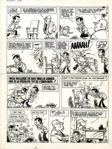 HACHEL. Benjamin Encre de Chine noire pour une planche de Benjamin parue dans le journal Tintin en 1978 Format : 32 x 41,6 cm . Signé.