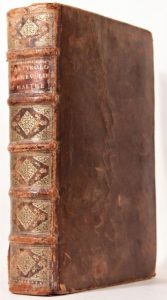 Le Martyrologe des chevaliers de S. Jean de Hierusalem, dits de Malte, contenant leurs éloges, armes, blasons, preuves de chevalerie, & descente genealogique de la plus-part des maisons illustres de l'Europe. Paris, François Noël et la veuve Guillaume Le Noir, 1643. 2 tomes en un volume in-folio, veau granité, dos orné, roulette sur les coupes, tranches mouchetées (Reliure de l'époque). Édition originale de cet imposant ouvrage sur l'ordre de Malte.