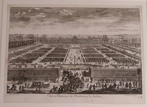 Vue du Palais des Tuileries du coté du jardin, achevé sous le règne de Louis XIV. Paris, Nicolas Langlois, s.d. [vers 1660]. 17,5 x 26 cm.