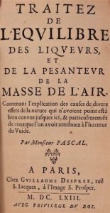 La fameuse expérience du Puy de Dôme, répétée à Paris au sommet de la tour Saint-Jacques, permit à Pascal d'affirmer que la pression atmosphérique variait avec l'altitude et que l'ascension du mercure dans le tube du baromètre était due à la pression et à la pesanteur de l'air – et non à « l'horreur de la nature pour le vide ». Prenant acte de ces résultats, les Traitez donnent le premier exposé des principes fondamentaux de l'hydrostatique.