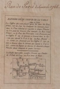 Plan de la ville et fauxbourgs de Paris. Paris, chez l'auteur, Desnos, 1766. In-4, demi-basane fauve, dos orné, tranches rouges (Reliure de l'époque). Important plan de Paris en 35 feuilles gravées, titre-frontispice compris, auquel sont adjoints un plan d'assemblage replié, une planche donnant la Manière de se servir de la table et 14 planches doubles pour la table des rues et des messageries.
