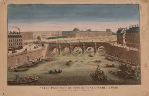 [ANONYME]. Vüe du Pont neuf du côté du Pont St Michel à Paris. Paris, N.J.B. de Poilly. Épreuve coloriée, 27 x 43,5 cm.
